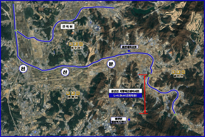 총 사업비는 도비 495억 원으로 ▲공사비 382억 원 ▲감리비 30억 원 ▲보상비 76억 원 ▲설계 및 기타비용 7억 원 등이 투입된다. 공사는 2028년 10월 준공을 목표로 추진된다.