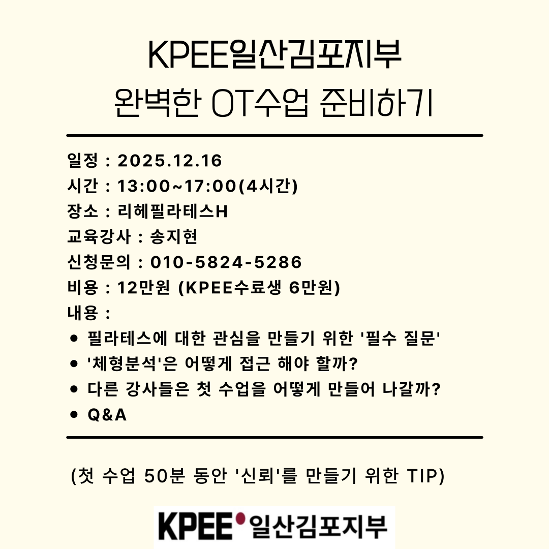 ☑ OT수업에 ‘두려움’이 있는 강사님 ☑ 나를 ‘실력있는 강사’로 보이게 만드는 방법을 알고싶은 강사님